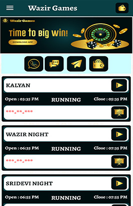 Let your guessing win you massive amount through Wazir Games App. Join our platform for expert advice and Wazir Games tips. Get the most trusted results daily. Play Online Satta Matka through Wazir Games is the most preferred and platform for online Wazir Games play. It provides the most updated Satta Wazir Games play results. Our app is one stop for all the updated live results for various Wazir Games market. Use Wazir Games to get the live updated results and earn huge profit. Earn Real Money through your tricks and updates.